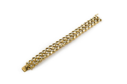 Vintage 1980s Gold Link Bracelet with Diamonds