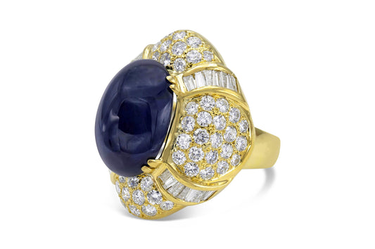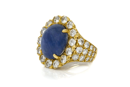 Vintage 1970s 22.79 Carat Cabochon Sapphire Ring with Diamonds