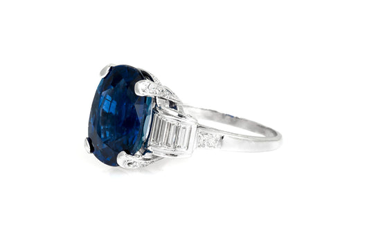 Vintage 1980s 8.16 Carat Sapphire Ring with Diamonds