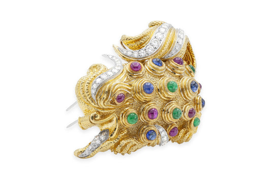 Vintage 1960s David Webb Multi-Gem Fu Dog Brooch