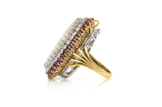 Vintage 1970s Opal, Ruby and Diamond Ring Pendant