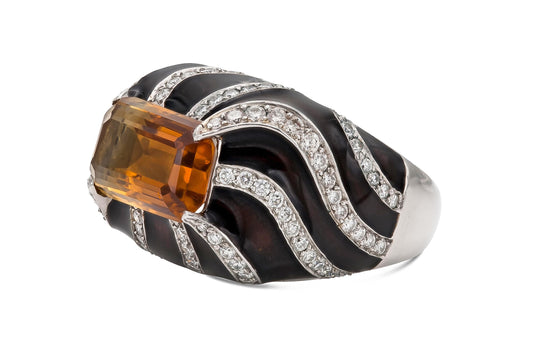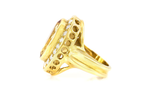 Vintage 1980s 8.00 Carat Citrine Ring with Diamonds