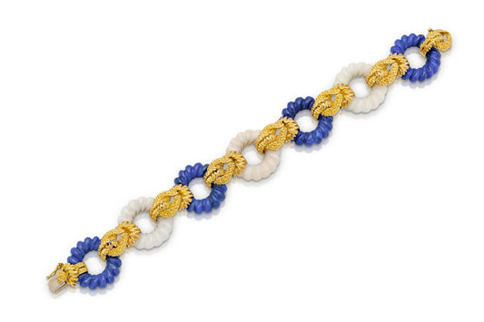 Vintage 1960s Lapis Lazuli and Bone Link Bracelet