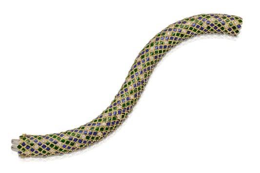 Vintage 1980s Enamel Scales Bracelet with Diamonds