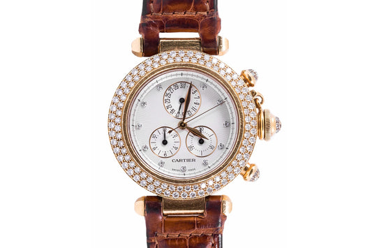 Vintage 1990s Cartier Gold Pasha Chronograph Watch with Diamonds