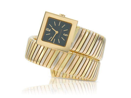 Vintage 1990s Bvlgari Tri-Tone Quadrato Tubogas Watch