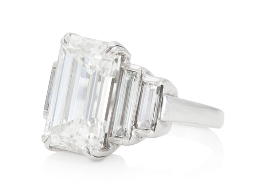 Antique Art Deco 1920s 9.39 Carat Emerald Cut Diamond Engagement Ring