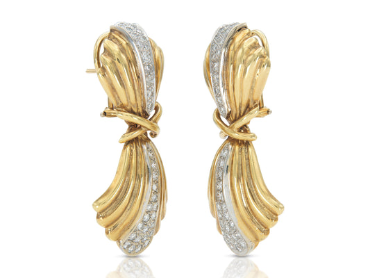 Vintage 1980s Gold Dangle Earrings with Diamonds