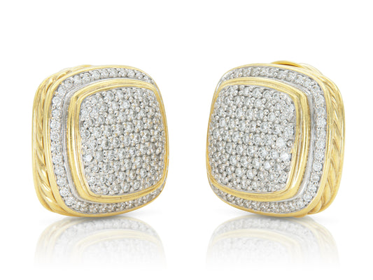 Vintage 1990s David Yurman Gold and Diamond Square Earrings