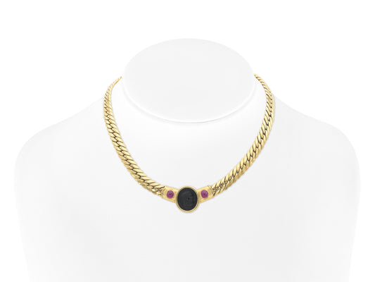 Vintage 1980s Onyx Cameo Gold Cuban Link Necklace with RubiesRegular price $14,500.00Regular priceUnit price / per