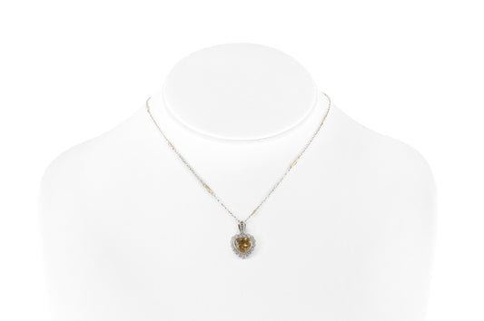 3.00 Carat Heart-Shaped Citrine and 0.90 Carat Diamond Pendant Necklace