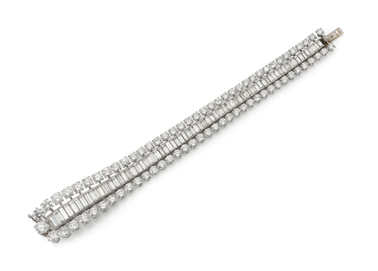 Vintage 1950s Boucheron 57.00 Carat Round and Baguette Diamonds Bracelet