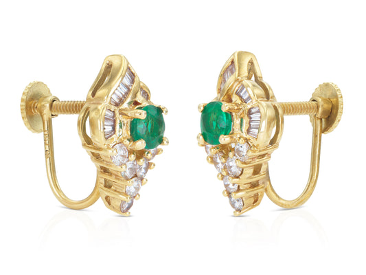 Vintage 1970s Emerald and Diamond Earrings