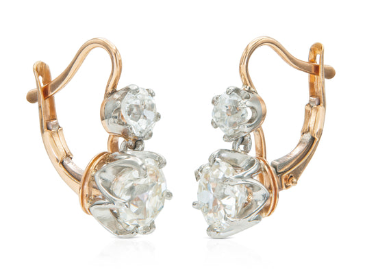 3.51 Carat Old Mine Cut Diamond Dangling Drop Earrings