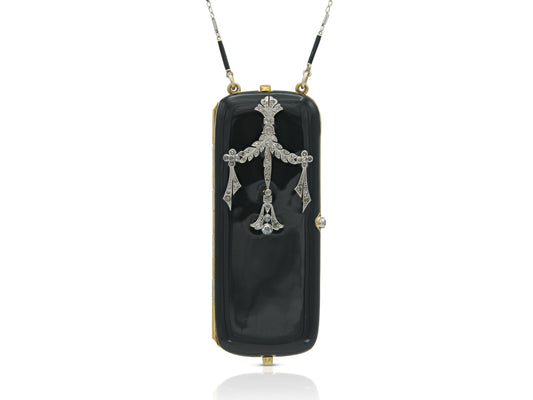 Antique Edwardian 1900s Enamel Compact with Diamonds
